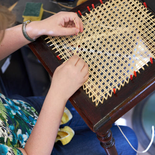 In unserer Stuhlflechterei werden Möbel mit Geflecht aus Peddigrohr aufgearbeitet. Wir arbeiten mit natürlichen Materialien nach historischen Mustern. Mit Geschick und langjähriger Erfahrung werden Ihre alten Möbel liebevoll wieder aufgewertet. Dazu gehören Restaurierungsarbeiten am Holz und das Neuflechten von Sitz und/oder Lehne.