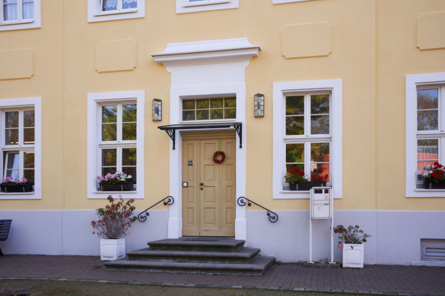 Das Wohnangebot umfasst 34 Plätze, davon 21 Einzelzimmer im barocken Herrenhaus des Gutshofes, eine 3er-WG im angrenzenden Pächterhaus sowie 10 weitere Einzelzimmer in Außenwohngruppen der näheren Umgebung. Dadurch kann während der Zeit im Gemeinschaftlichen Wohnen auf Veränderungen der individuellen Selbstständigkeit eingegangen werden. Im Herrenhaus findet eine eher enge Betreuung statt. In den Außenwohngruppen ist große Selbstständigkeit meist die Regel.